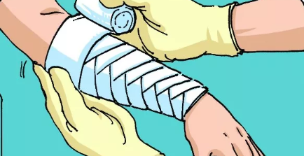 · 先將繃帶纏繞肢體兩圈固定,然后由受傷部位的下方開始,由下而上包扎。